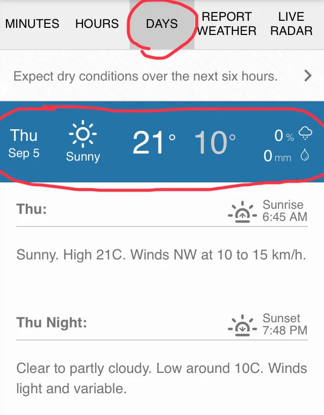 - If you click the three dots (...), it will show you even more information such as humidity, pressure, wind gusts, etc.