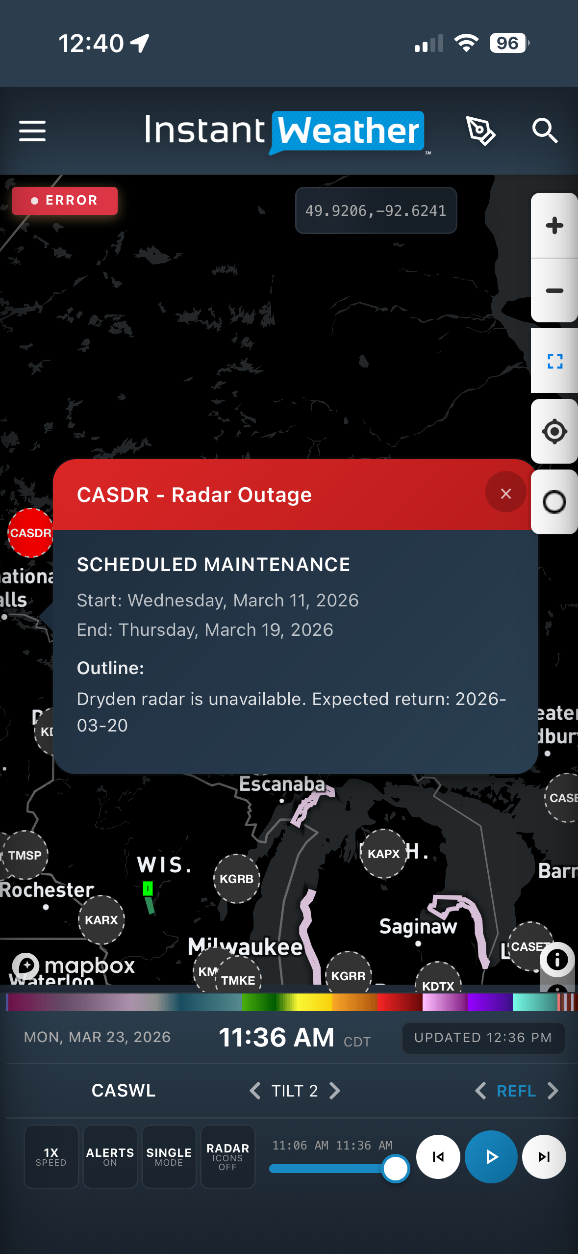 Previously, it was not always clear whether an issue was with IW Pro or the radar station itself. This update helps remove that uncertainty by clearly showing when a radar outage is the cause.